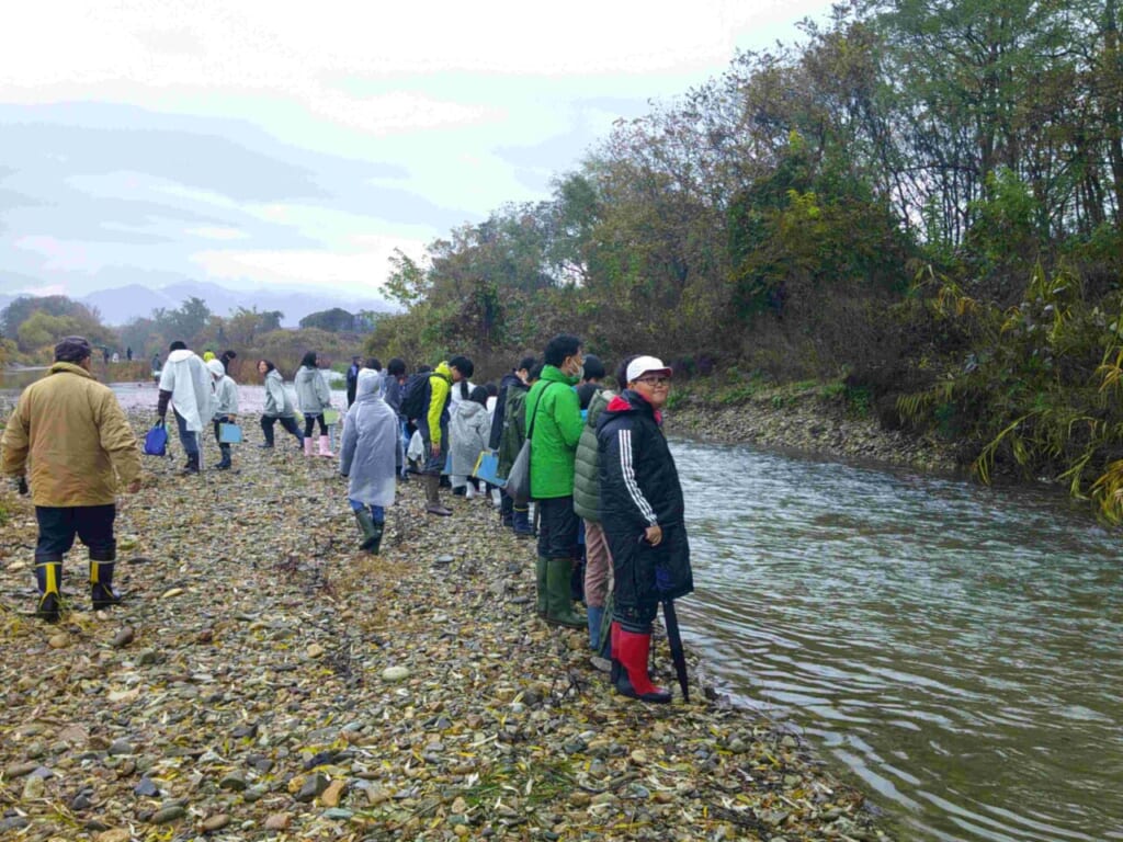 11月21日(金)にサケの遡上観察会を実施しました。これは、カクレトミヨ飼育のための井戸水なども提供いただいている、清野さんはじめ地域の方々のご協力により、市教育委員会の支援のもと行っているものです。今回参加した6年生は、3年生のときに卵から孵化したサケの稚魚を分けていただき、それを教室で大事に育ててから押切川に放流した経験をもっています。その中のサケが海に出て成長し、育った川に戻ってくるという壮大な物語の最後の場面を見とることになります。雨模様でもあり、昨今のサケの減少傾向から泳いでいるものが数匹の状態でしたが、息絶えてしまったサケも含めて、命の尊さ、大切さを実感できるものとなりました。前日に、3年担任だった伊藤先生から当時の写真などをもとに思い起こす授業なども行っていただき、感慨深い思いをいだきながらの学習となりました。