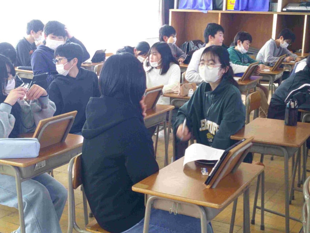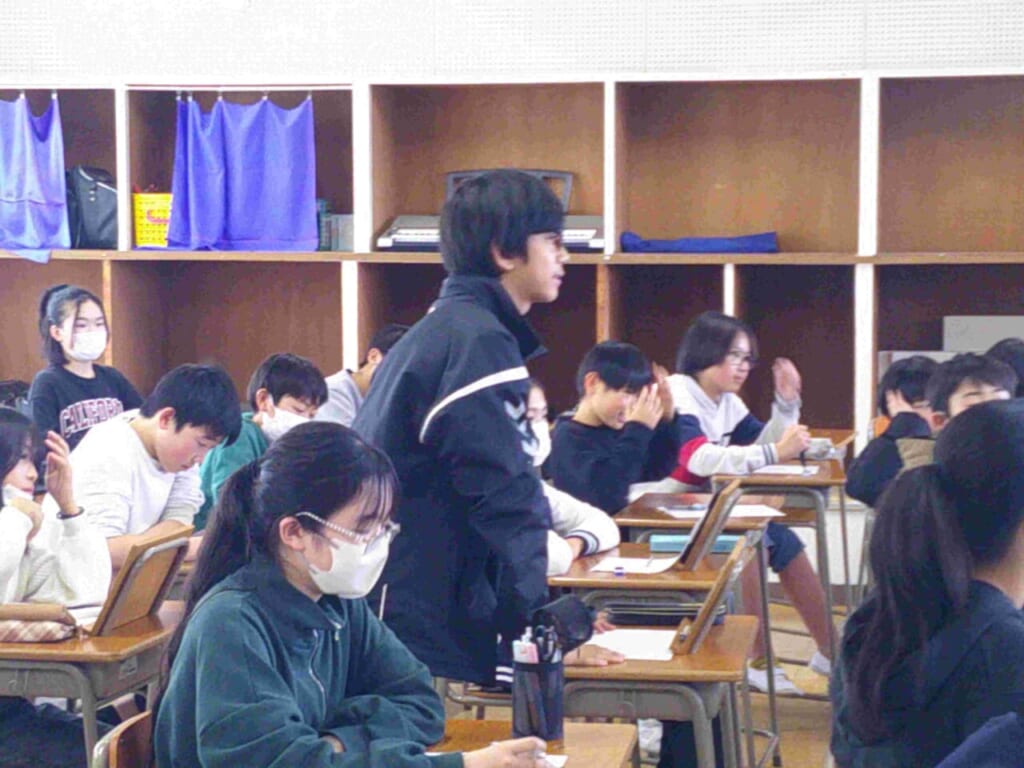 2月18日(水)に、成生小を卒業した天童四中生5人が来校し、「ようこそ先輩」として、6年生が中学校に向けて疑問に思っていることなどを質問したり、中学生から中学校生活について教えてもらったりする会を行いました。四中生からは、試験問題や中学校の生活の約束などについて伝えてもらい、中学校生活の見通しを持てるようになりました。6年生からは、普段考えていることで、聞いていいか迷うことなどについても質問することができて、とても有意義な時間になったようです。