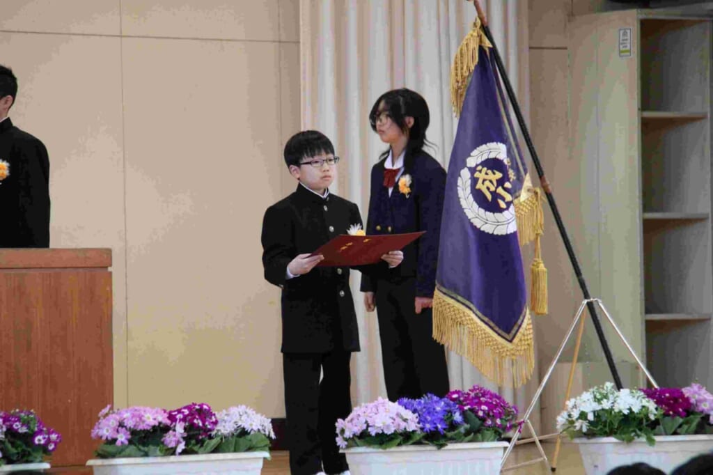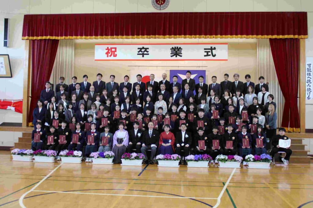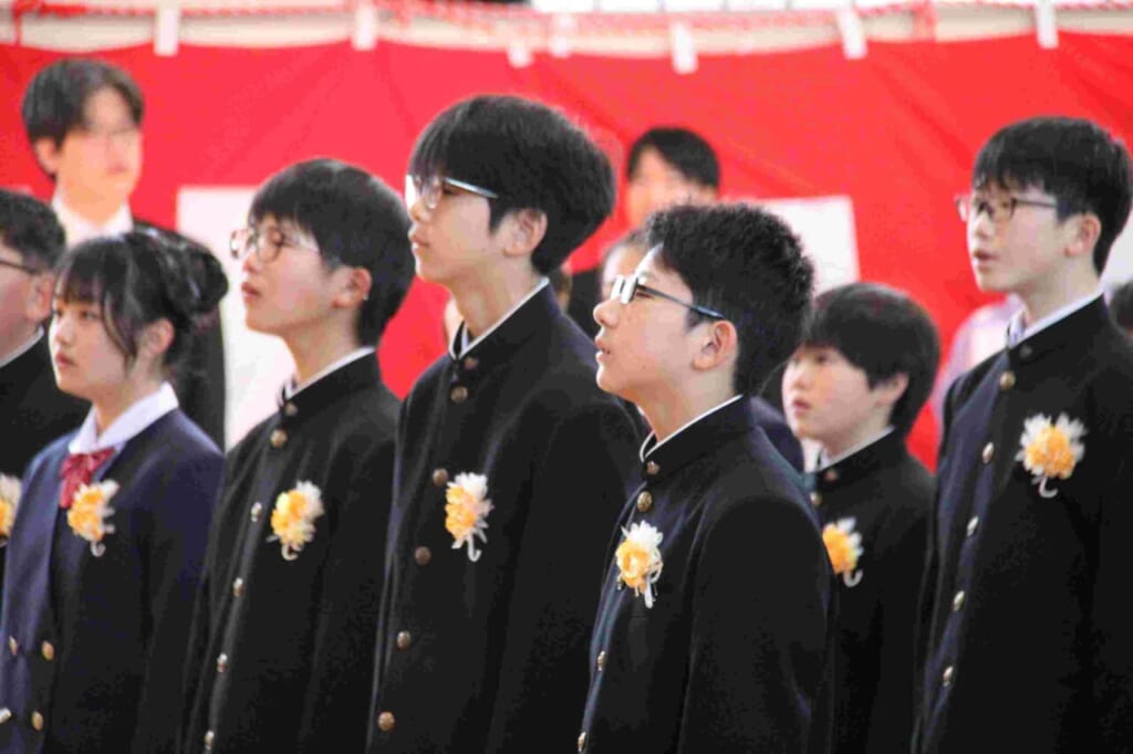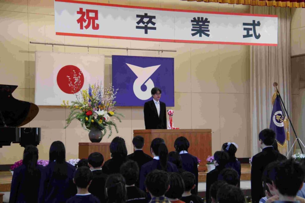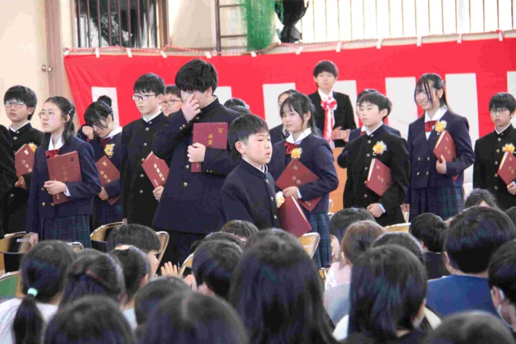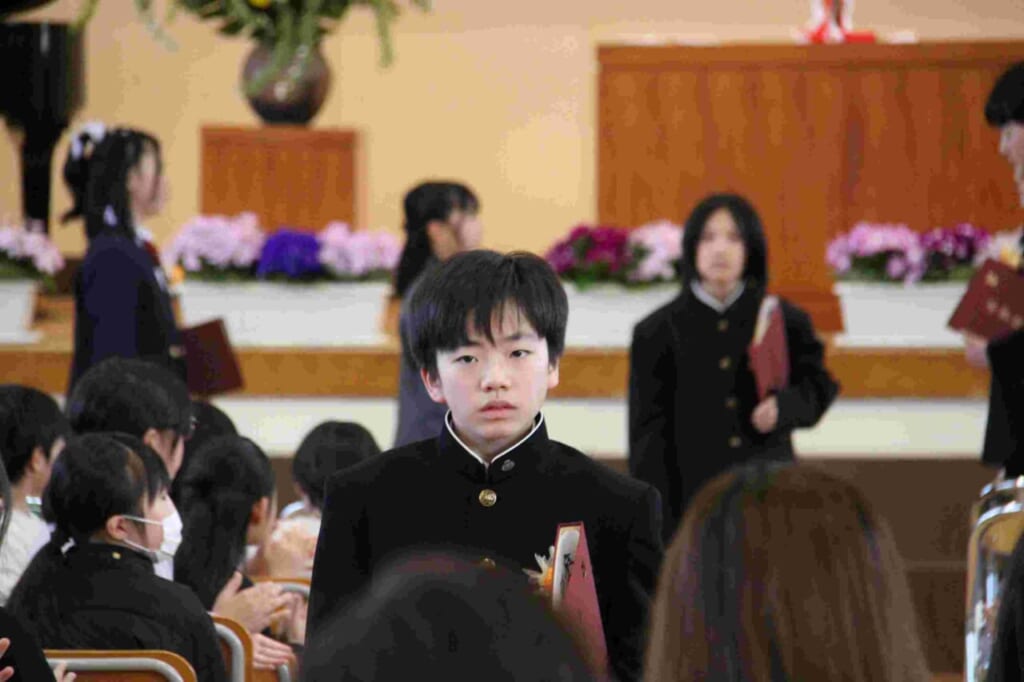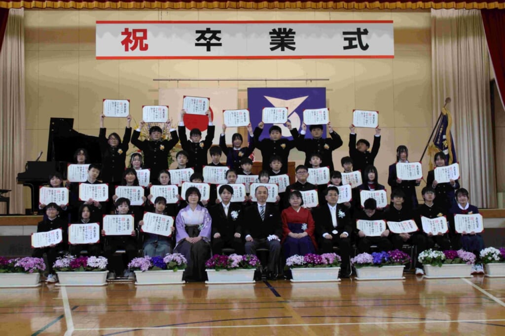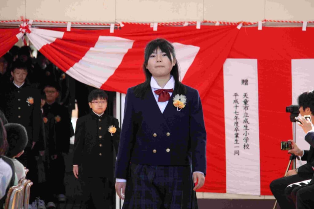 3月20日(金)祝日の日に、成生小学校の卒業式が行われました。予報では雨模様というものもありましたが、当日は葉山や月山まで見渡せるとてもよい天気の中での式典となりました。卒業生の子どもたちは、中学校の真新しい制服を身に着け、これまでとは違う凛々しい表情での会場入場となりました。証書授与の際には、校長先生としっかり目を合わせ、呼名に応じて大きく返事を行い、堂々と受け取っていました。全校合唱や、卒業生の合唱には気持ちがこもり、大きな歌声が講堂に響き渡りました。また、卒業生のみの呼びかけの場面では、声が出なくなった仲間の分も自分が出すという意気込みで、互いに支え合いながら取り組んでいました。また、休む人もなく、全員が卒業証書を手にすることができました。これからは、卒業生一人ひとりが中学校へ向けて希望を抱きながら、歩みを進めていってくれるでしょう。