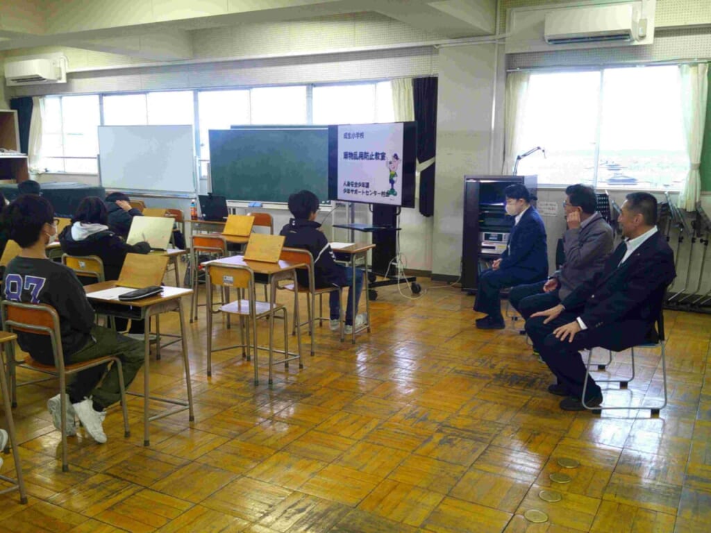 12月16日(火)に、山形県警察本部の米野統括少年補導専門官含め3人の方に来校いただき、6年生に対して薬物乱用防止教室を行っていただきました。薬物については、ネットでのやり取りから若年層にも使用してしまう例が後をたたず、重点的に対策を行っていく必要があります。そこで、スライドを使って薬物についての理解を深めるとともに、実際のものと同じ模型等に触れながら、具体的に何が危険なものなのかを知ることができました。今回のことを生かし、自分で判断して自分を守る行動ができるよう、知って生かす学びにつなげていきたいと思います。