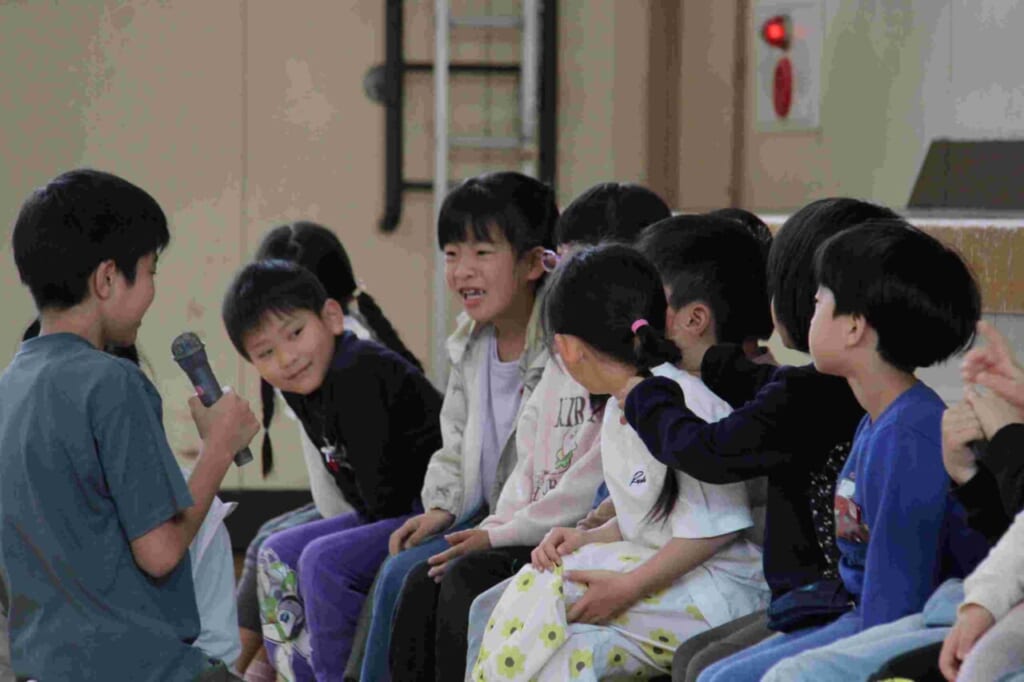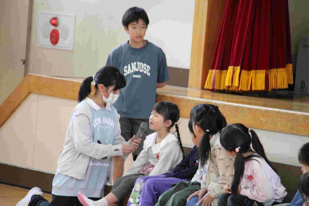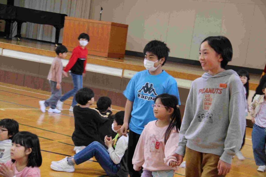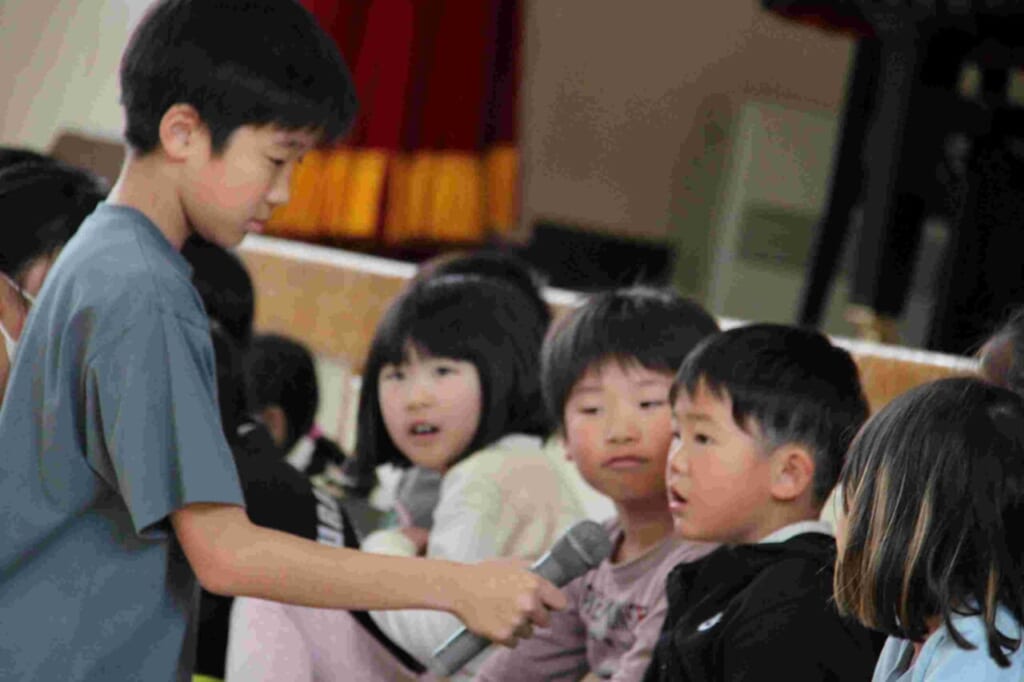 4月21日(火)に、1年生を迎える会を行いました。当日まで6年生が、1年生が楽しくなる企画や、進行の段取りなど、一生懸命に取り組んできました。今日は、その努力が試されるときです。6年生が、同じグループの1年生の手を引いての入場です。少しはにかみながら歩く1年生の姿が印象的でした。その後は、1年生に名前と好きな動物を発表する自己紹介インタビュー。にこにこ班の中でのゲームなどに取り組んでいきました。校長先生の話の中で、1年生に向けて「今日は楽しかったですか?」の問いかけに元気に手を挙げる人たちがたくさん居て、6年生の頑張りが伝わったと思ったところです。今後は、2年生以上の上級生のみなさんが、いろいろな場面で1年生と関わっていくと思われます。成生小伝統の挨拶や車列へのお辞儀、通学の時の安全な歩き方、廊下歩行やグラウンド・講堂での遊び方など、望ましい行動でお手本を示していってくれるでしょう。1年間のこれからの活動が楽しみです。
