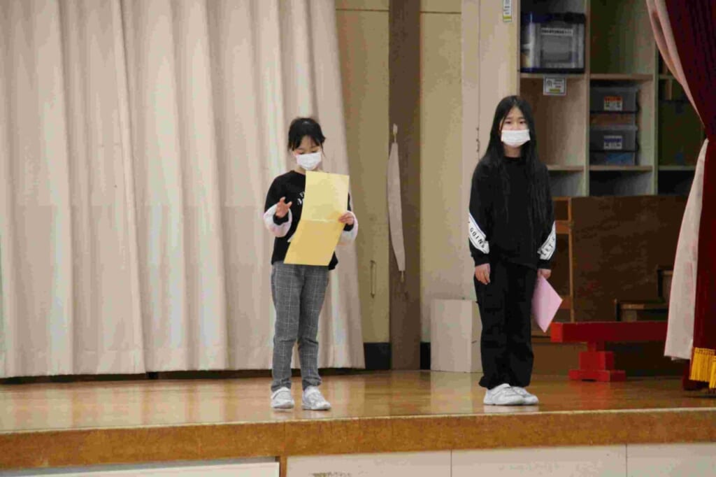 1月14日(水)に、3学期のめあて発表朝会を行いました。今回の代表は、2年生古澤希々果さんと3年生の奥山陽向さんです。希々果さんは、苦手な算数を頑張ること、困っている人がいたら声をかけ、助けること、そして、お家の人のお手伝いをすることを伝えていました。また、陽向さんは、休み時間と授業をうまく切り替えること、苦手な漢字の学習を頑張ること、そして、食器洗いや洗濯などのお手伝いをすることを伝えていました。発表の中で二人に共通のものとして出されたのが、「メリハリ」という言葉です。「メリハリ」をつけて行動するためには、今行っていることをやめなければなりません。そのような、強い気持ちをもって取り組む姿勢を見せてくれた二人。発表後の講話でも、そのことを取り上げ、3学期は、学校でも家庭でも同じように取り組めるようにしましょうと子供たちに伝えたところです。