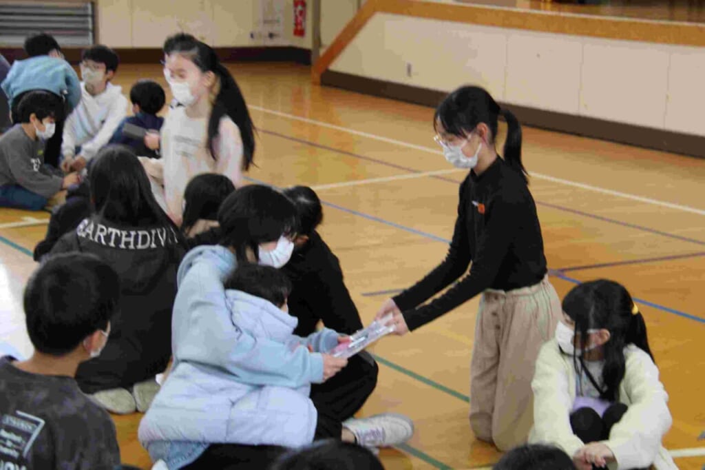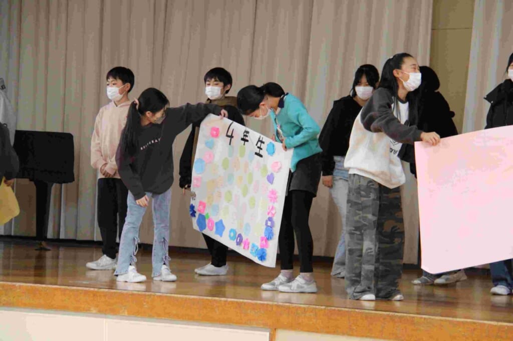 2月27日(金)、3月が身近に迫るこの日、これまで成生小学校の機関車として頑張ってきた6年生を送る会が、5年生の企画のもと行われました。当日は、6年生の入場からはじまり、縦割り班ごとの絵しりとりゲーム、1年生から5年生までのメッセージが入った色紙の贈り物、そして、6年生からの各学年への贈る言葉が入った模造紙が送られました。今回集まった仲間は、来年同じように集うことはできません。かけがえのない時間を過ごしたことを思い出にして、6年生は卒業へ向けて、5年生以下の人たちは次の学年へのまとめを行っていきます。
